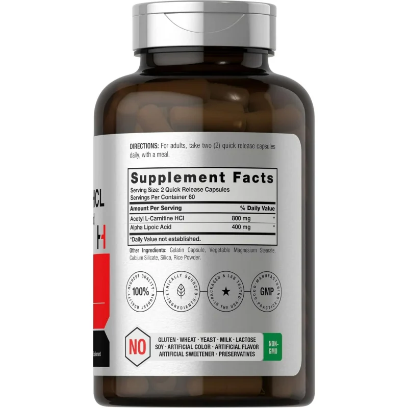 Horbaach Acetyl L-Carnitine HCL & Alpha Lipoic Acid 1200mg 120 Capsules