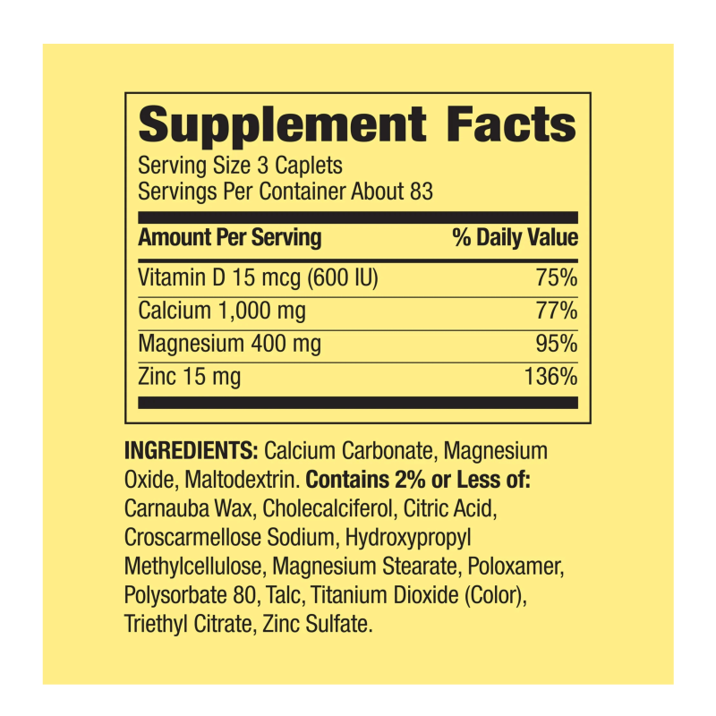 Spring Valley Calcium Magnesium & Zinc + D3 250 Caplets