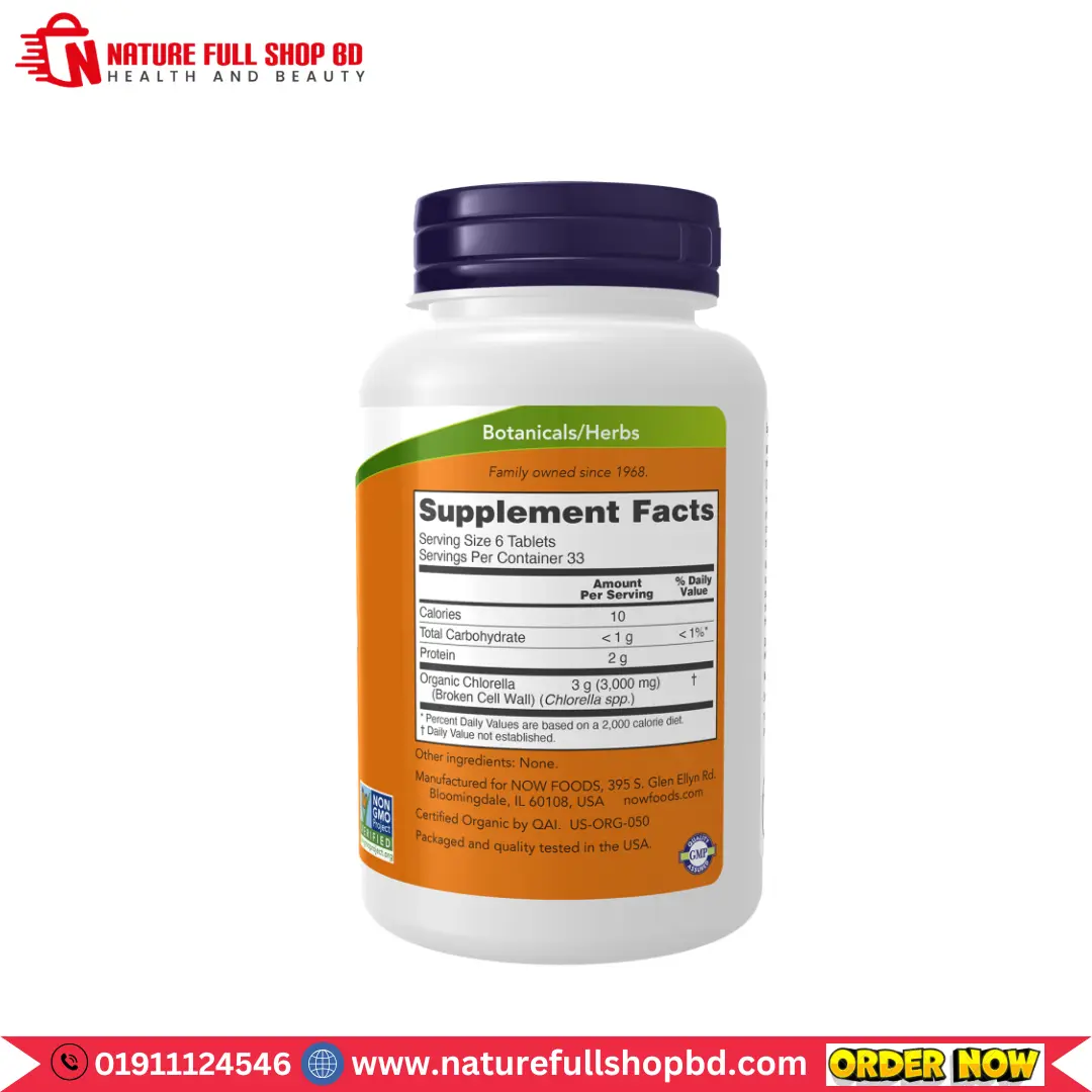 Now Foods Certified Organic Chlorella 500 mg 200 Tablets