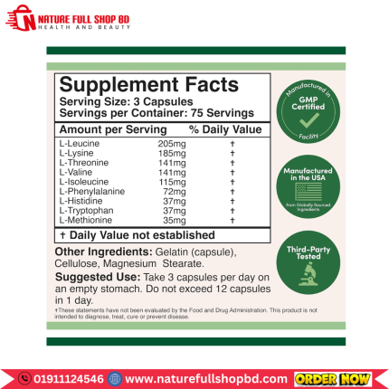 Double Wood Supplements Contains All 9 Essential Aminos Acid 225 Capsules