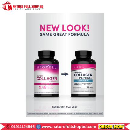NeoCell Grassfed Collagen Peptides + Vitamin C 6000 mg 120 Tablets
