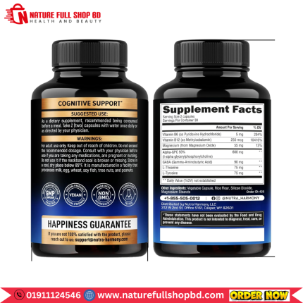 NutraHarmony Alpha-GPC 600 mg with Gaba, L-Theanine, L-Tyrosine, B6 & B12 60 Capsules