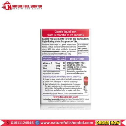 Vitabiotics Feroglobin Baby Drops With Iron Vitamin C And Zinc 4-24 Months 30ml