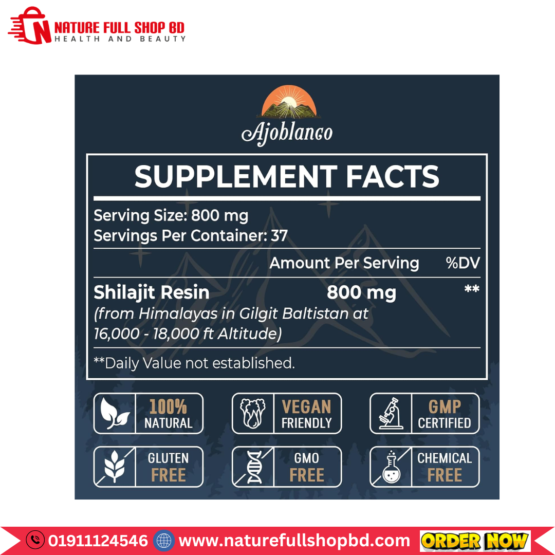 Ajoblanco Pure Himalayan Shilajit 800mg - 30gm