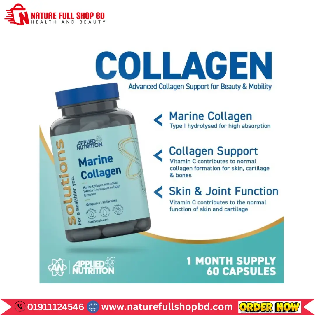 Elevate your daily wellness with Applied Nutrition’s Solutions – Marine Collagen Capsules, expertly formulated to support skin, joint, and cartilage health. Featuring premium hydrolysed marine collagen for superior absorption, this advanced formula is enhanced with Vitamin C to support natural collagen formation. Vitamin C contributes to the normal function of skin, cartilage, bones, and gums — making this supplement ideal for those seeking inner strength, mobility, and a youthful appearance. Whether you’re supporting an active lifestyle, maintaining skin vitality, or reinforcing your body’s connective tissues, this formula delivers clean, science-led results. Sustainably sourced and manufactured under strict GMP standards. Each bottle contains 1-month supply (60 capsules) and is lactose-free, dairy-free, Halal certified, and suitable for pescatarians.