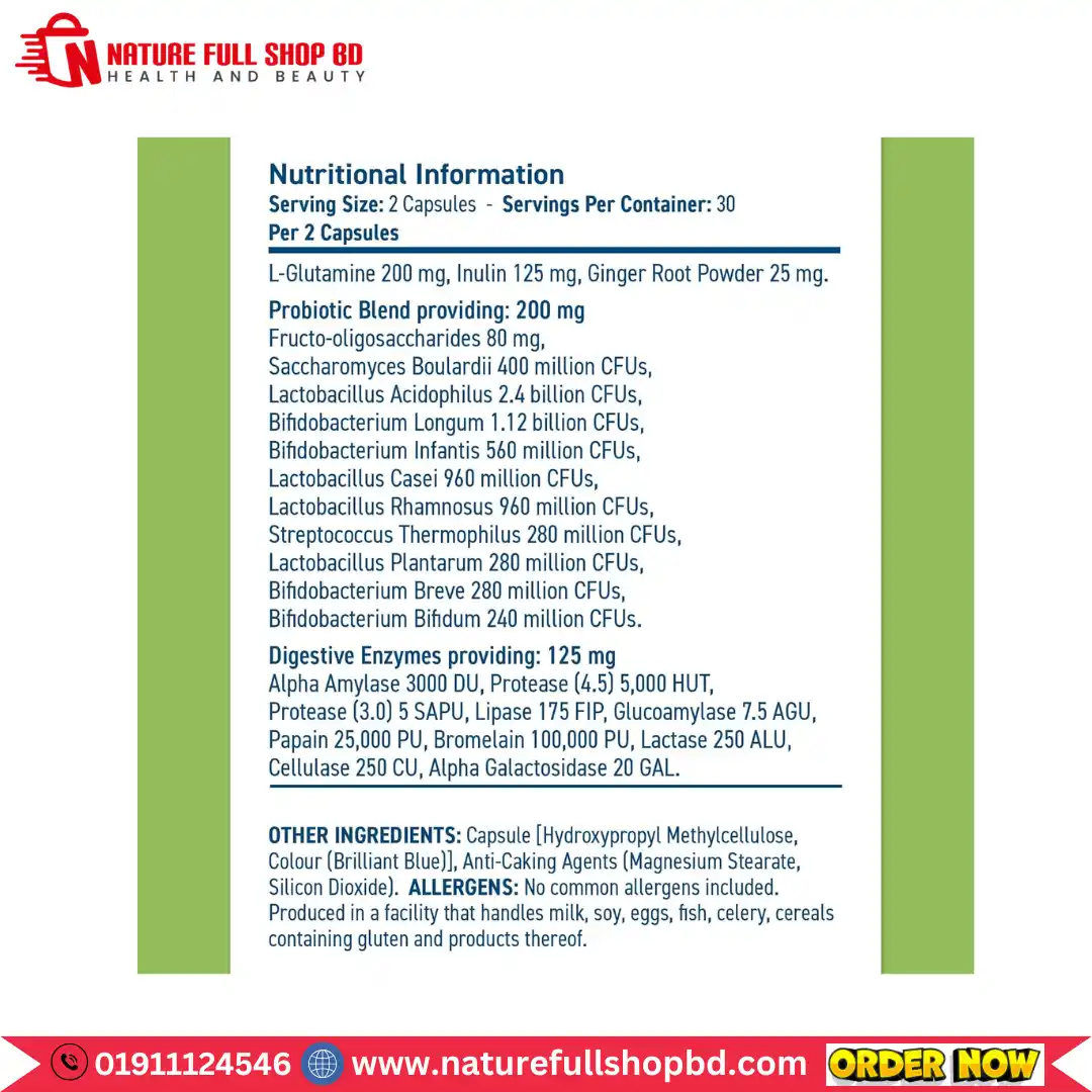 If bloating, irregular digestion, or discomfort after meals has been holding you back, this supplement is here to help. Its carefully selected 10 probiotic strains restore healthy gut flora, while prebiotics like Inulin & FOS nourish the good bacteria your body needs to thrive. On top of that, digestive enzymes support smoother digestion and help your body absorb the nutrients it needs to feel its best.