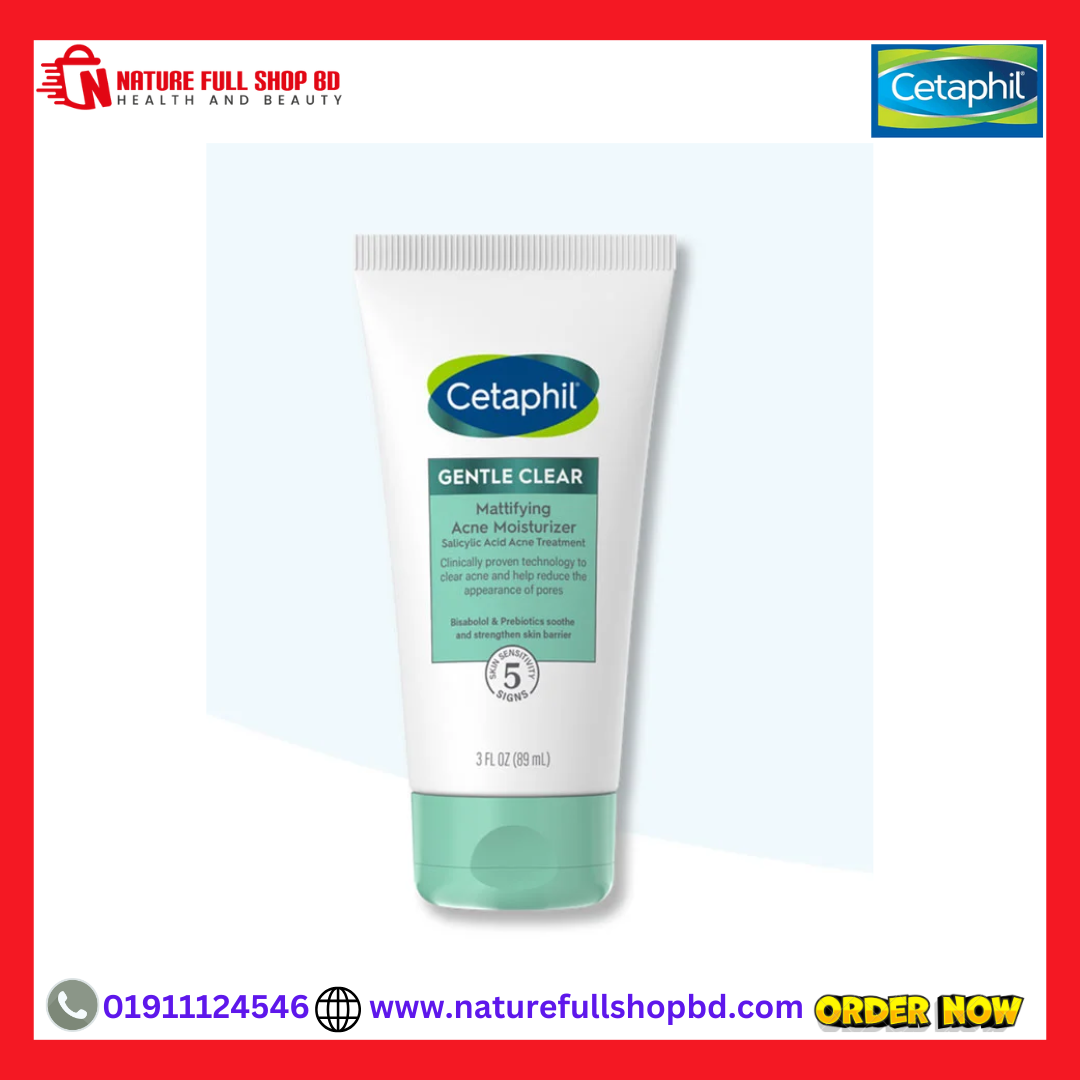 Cetaphil Gentle Clear Mattifying Acne Moisturizer – 89ml, This lightweight moisturizer with acne-fighting salicylic acid, helps clear and prevent breakouts while soothing acne-prone, sensitive skin. Hydrates for 48 hours, and improves skin tone and texture. Formulated with salicylic acid to help clear and prevent breakouts plus a prebiotic and skin-nourishing botanicals, including bisabolol to soothe skin, kojic acid, and licorice root extract to help reduce the appearance of post-acne marks. It helps to absorb excess oil and provides a matte finish for softer, smoother skin.   After 1 week, 89% of consumers said this moisturizer leaves their skin feeling hydrated and nourished. Defends against 5 signs of skin sensitivity including dryness, irritation, roughness, tightness, and a weakened skin barrier.