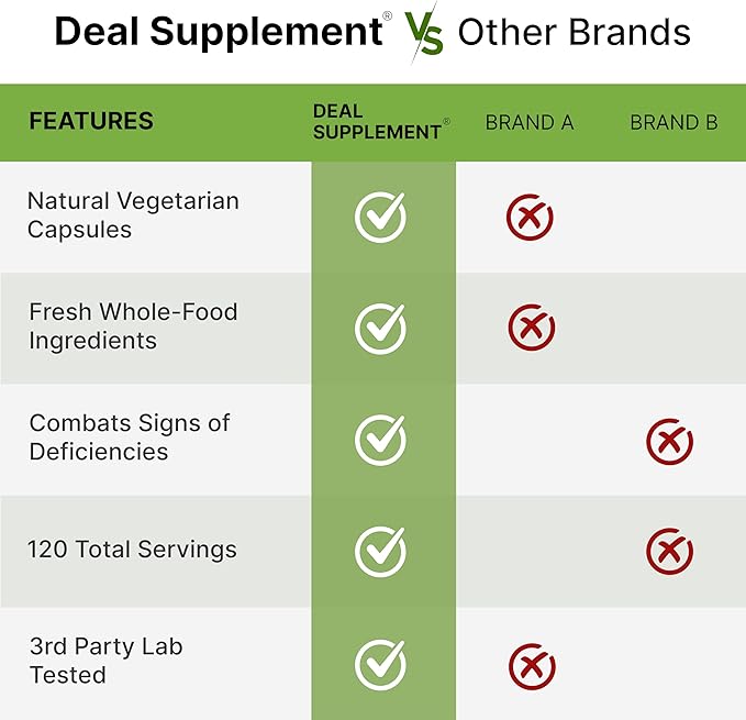 Made with only real, whole foods, this fruits and veggies supplement harnesses the power of nature without GMOs. It delivers the goodness of fresh-picked fruits and vegetables in a convenient, easy-to-consume capsule formula.