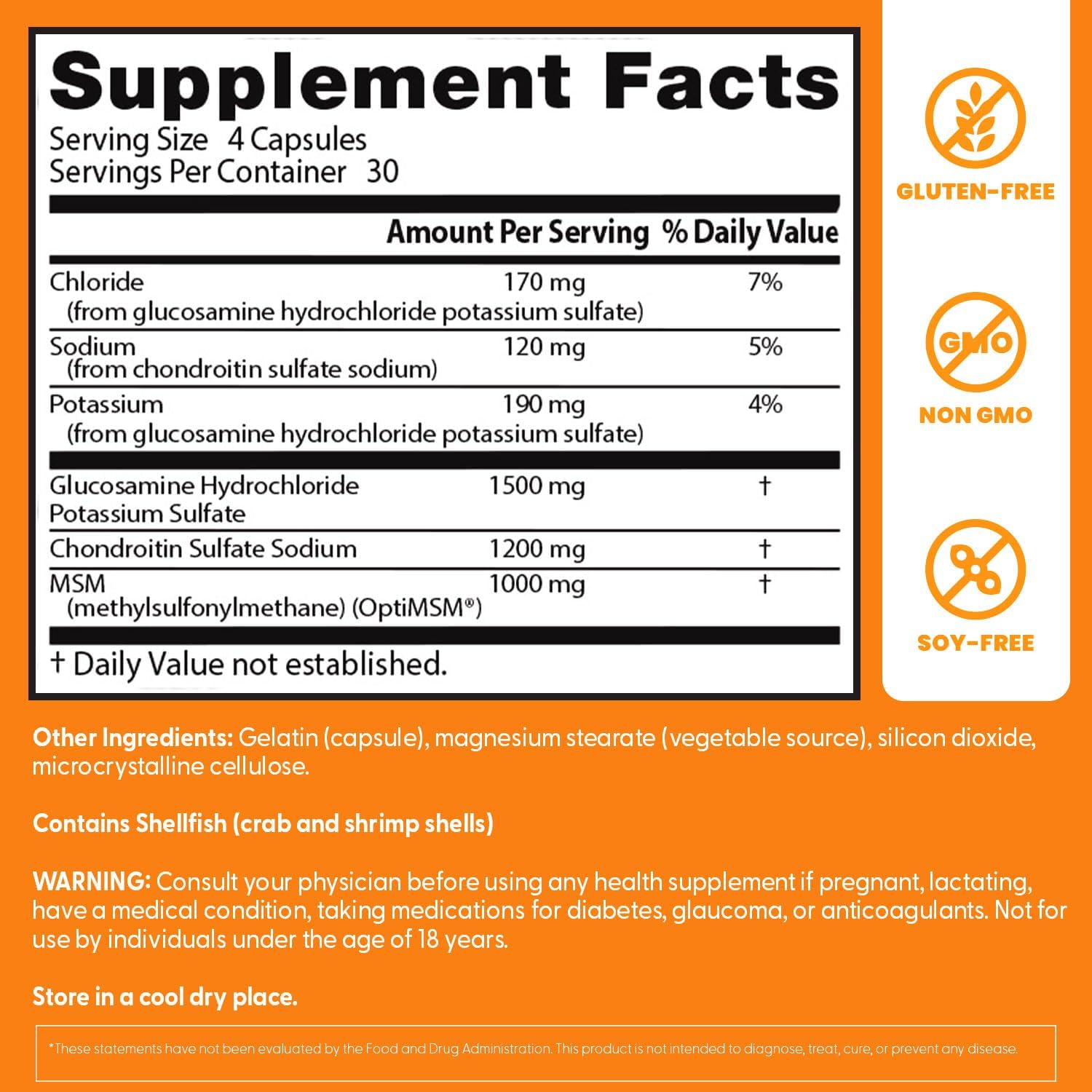 | Chloride (from glucosamine hydrochloride potassium sulfate) | 170 mg | 7% |