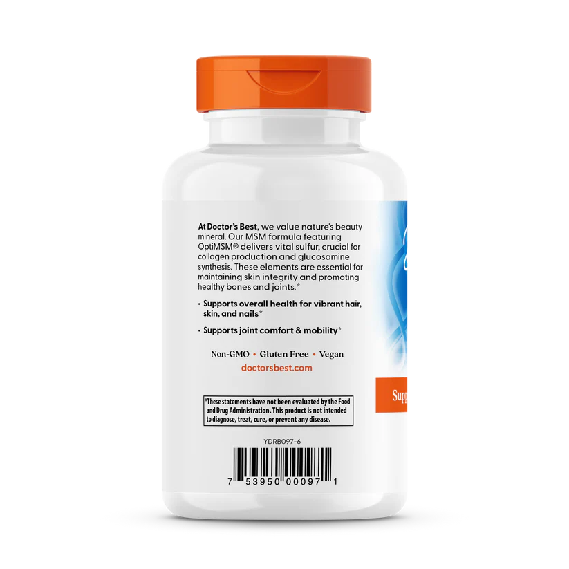 At Doctor’s Best, we value nature’s beauty mineral. Our MSM formula featuring OptiMSM® delivers vital sulfur, crucial for collagen production and glucosamine synthesis. These elements are essential for maintaining skin integrity and promoting healthy bones and joints.