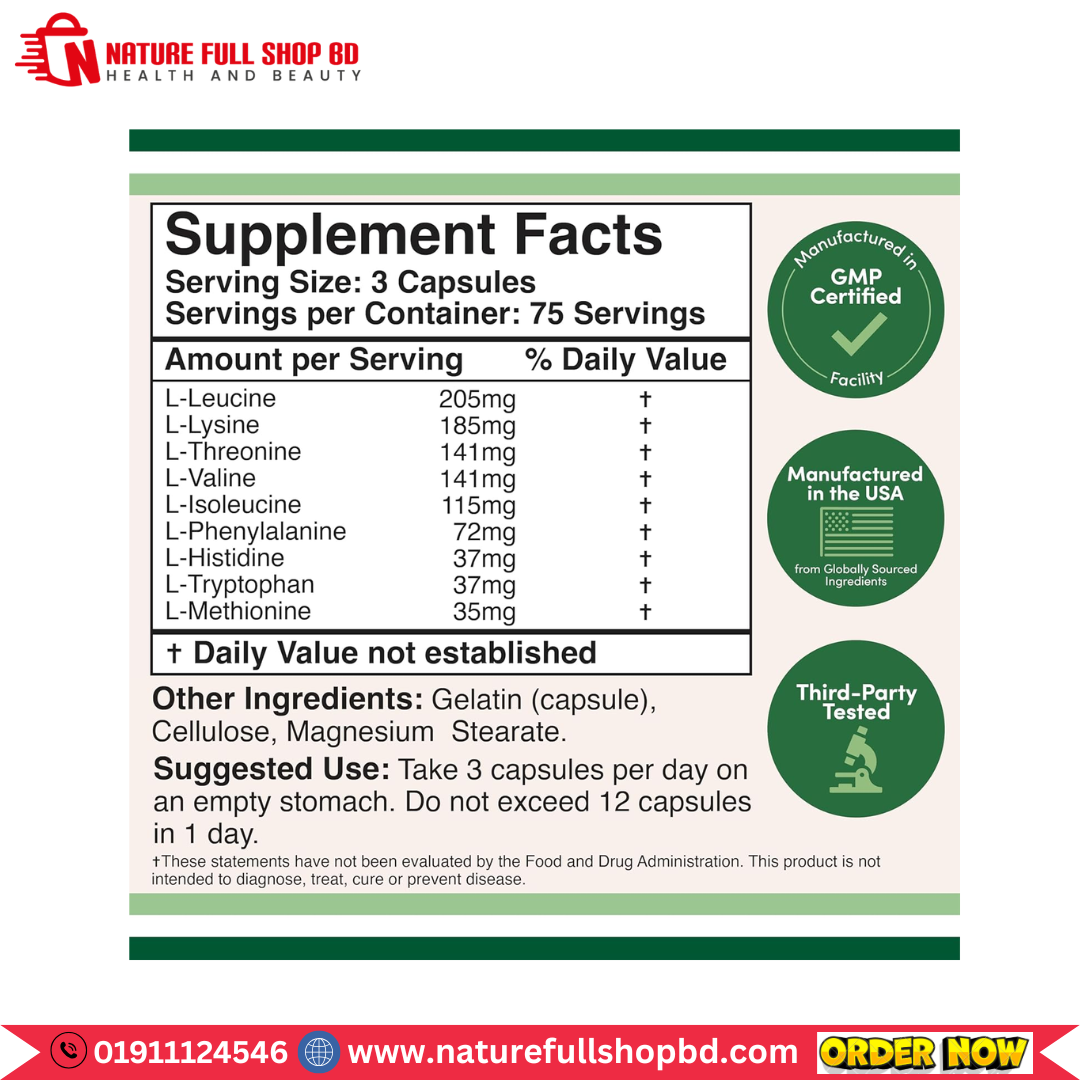 - CONTAINS ALL 9 ESSENTIAL AMINO ACIDS (EAAS): Each serving consists of a 1 gram powder blend of all 9 essential amino acids