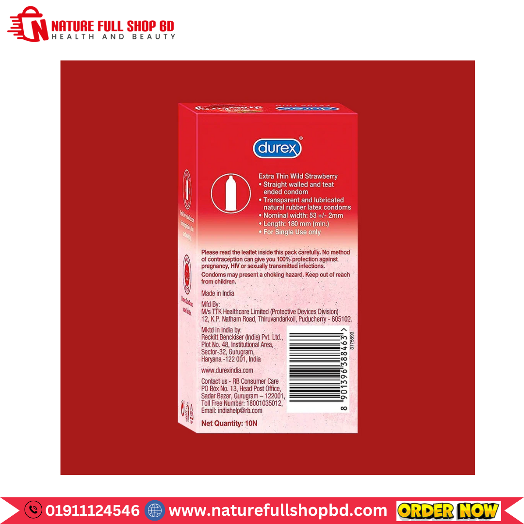 Durex Extra Thin Wild Strawberry Flavoured Condoms-12 Pcs Pack