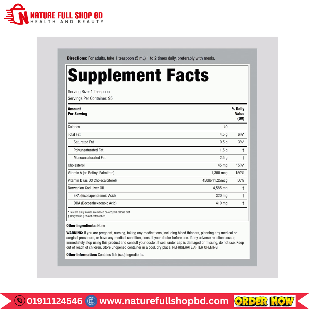 Engelvaer Norwegian Cod Liver Oil EPA DHA 473 ml