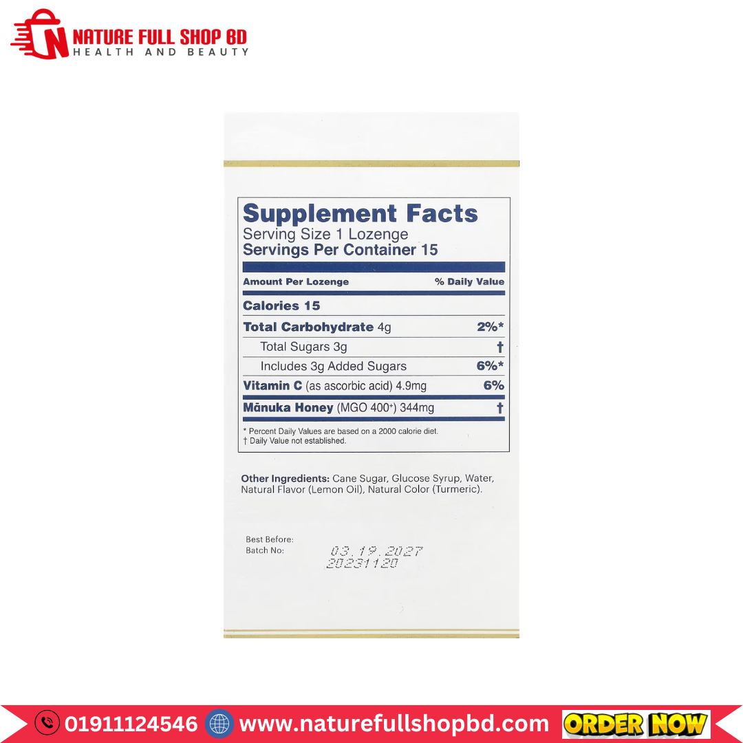 - Lozenges made with our high grade MGO 400+ Manuka Honey, certified for natural methylglyoxal content (400mg/kg)
