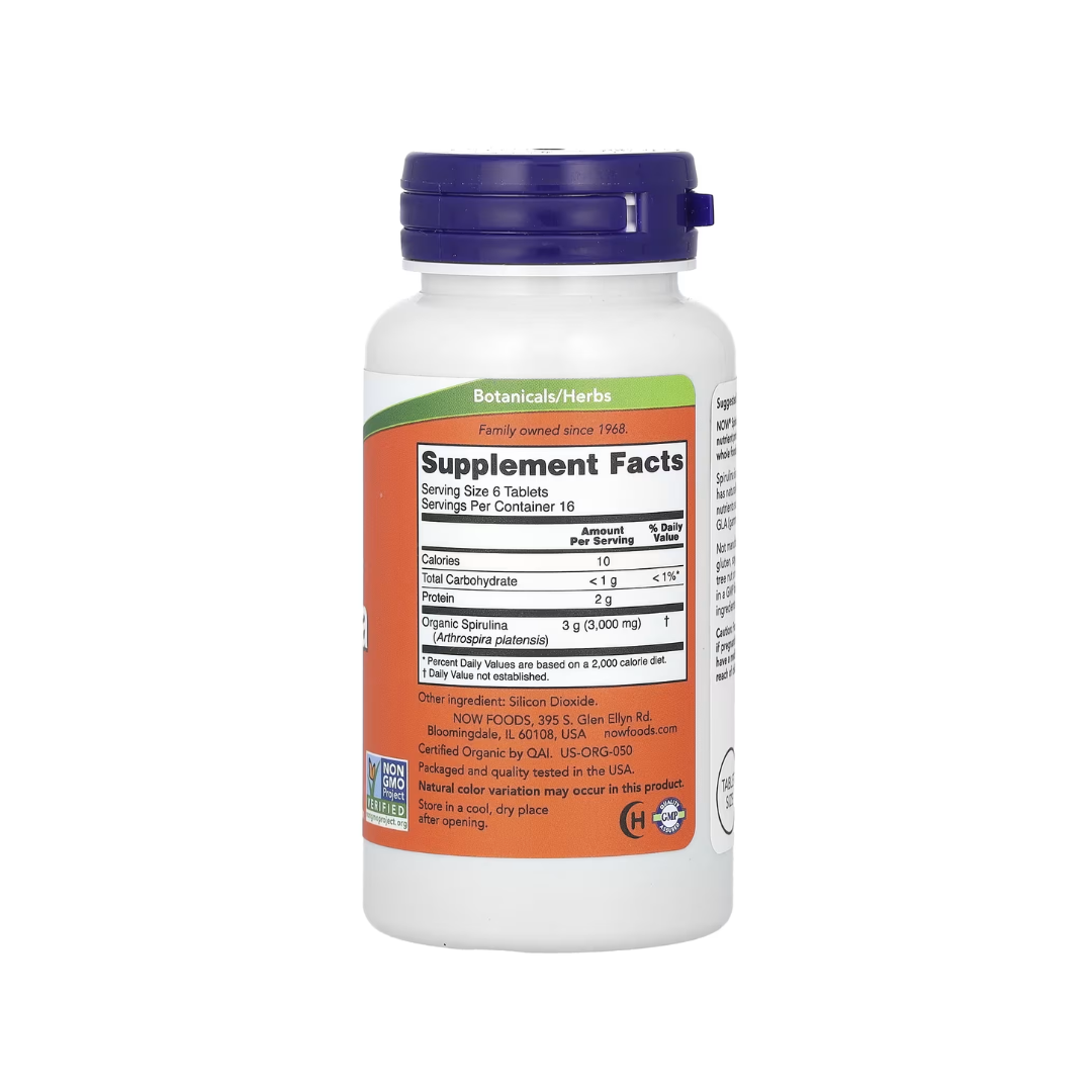 Now Foods Certified Organic Spirulina 500 mg 100 Tablets