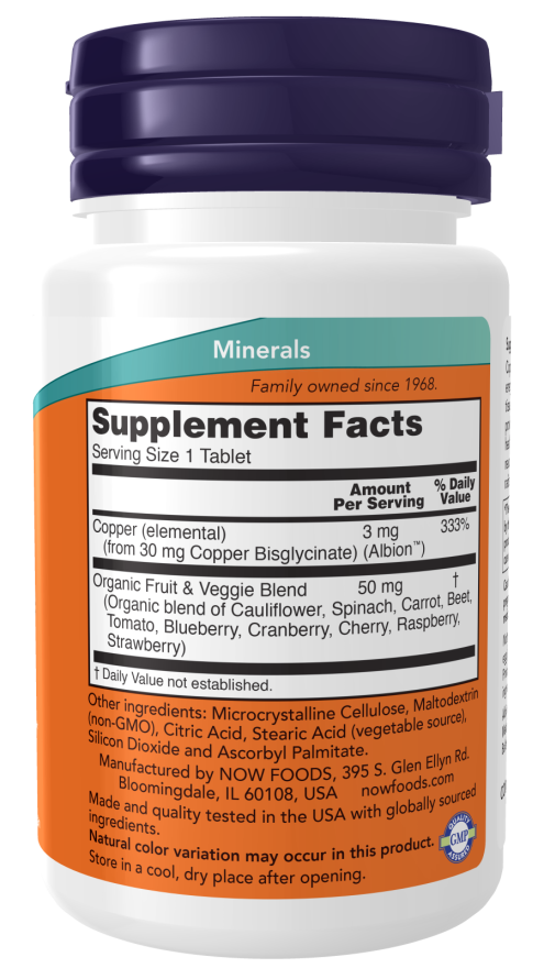 Now Foods Copper Glycinate 3 mg Albion Copper 120 Tablets