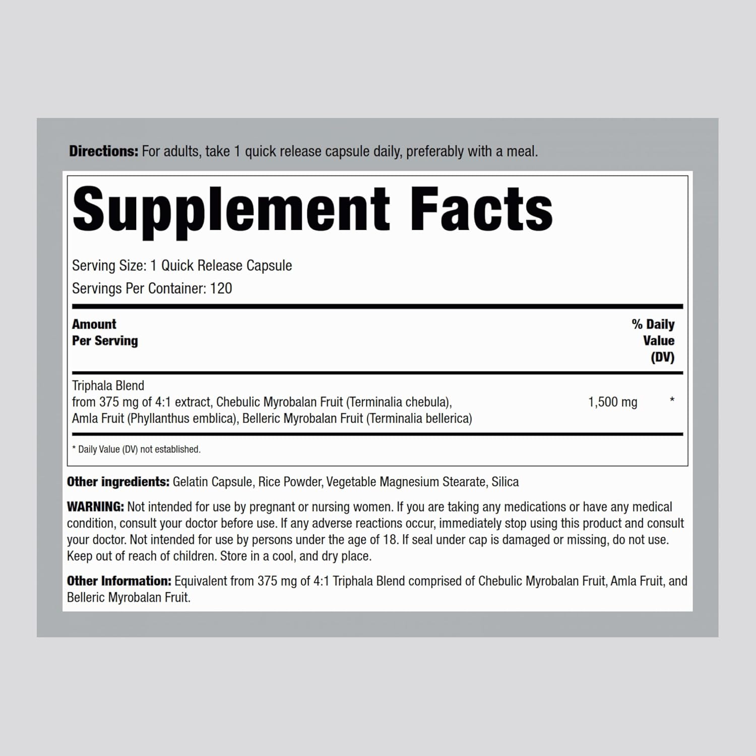 Piping Rock Triphala is a premium herbal supplement featuring an optimal 1,500 mg blend per serving of traditional fruit in quick-release capsules. Our Gluten Free and non-GMO formula is tested for purity and potency down to each individual ingredient, ensuring exceptional quality all the way!