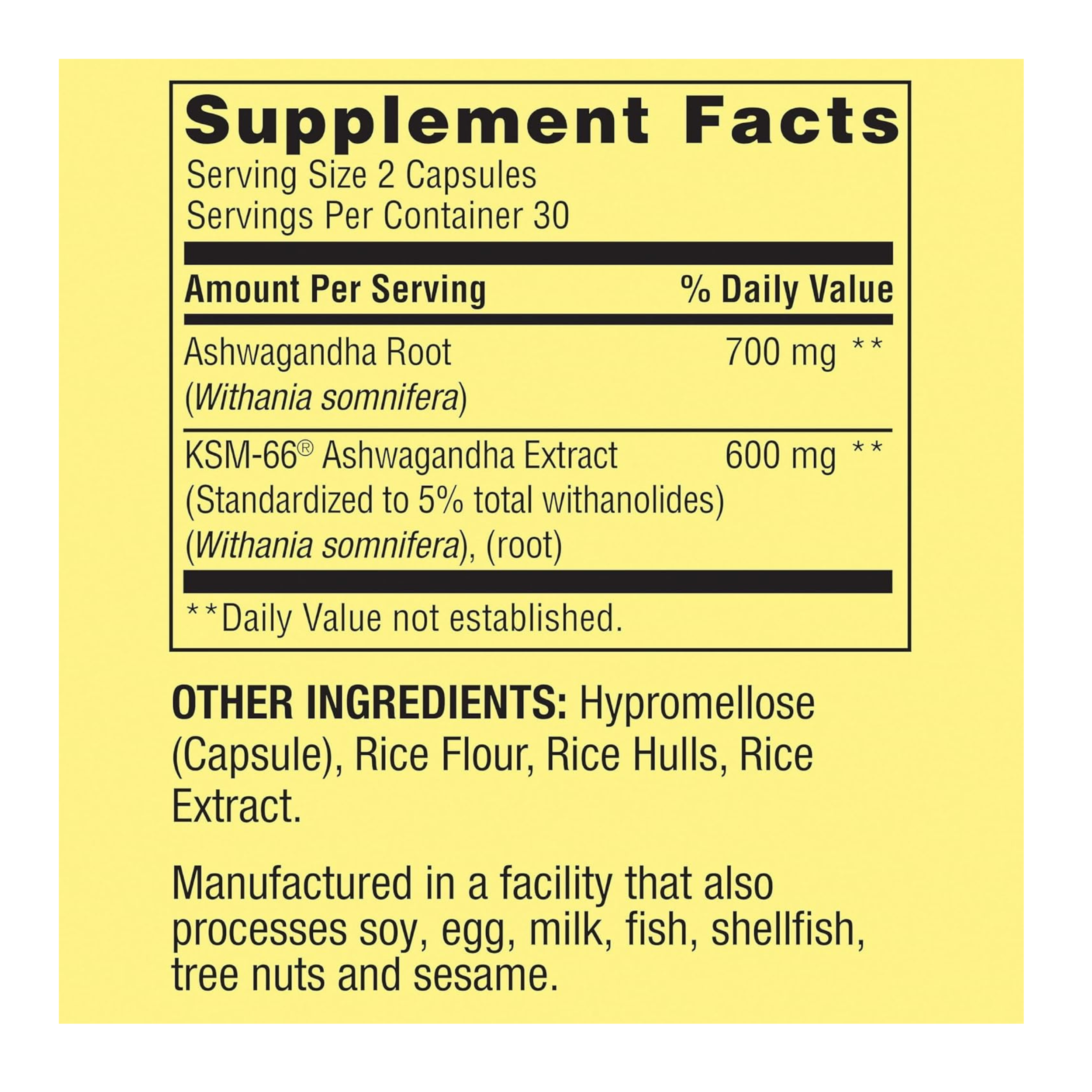 Spring Valley Ashwagandha 1300mg – 60 Vegetarian Capsules