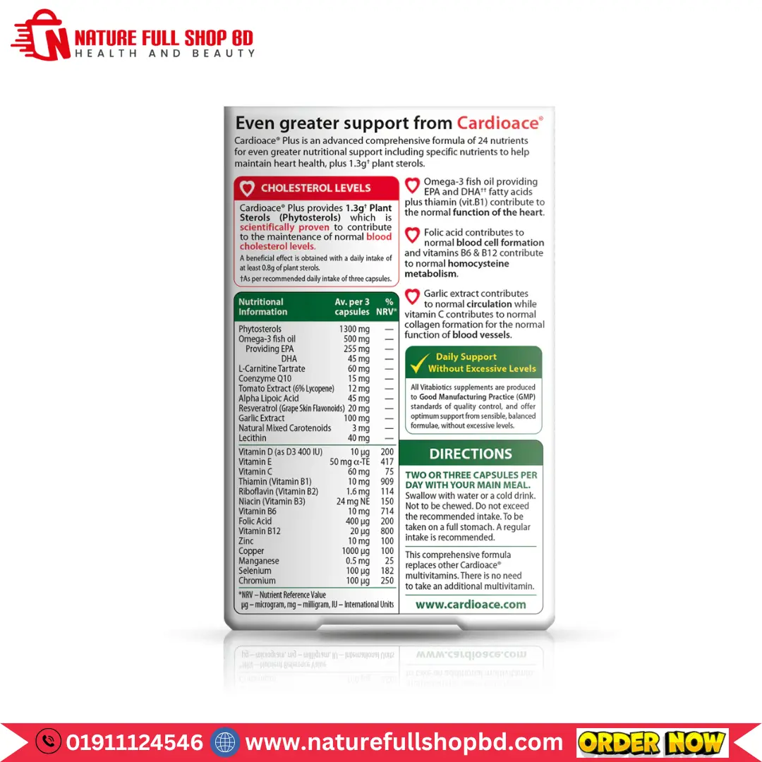 Give your heart extra care with Cardioace Plus, an expertly balanced source of Plant Sterols, essential nutrients, and botanicals.
