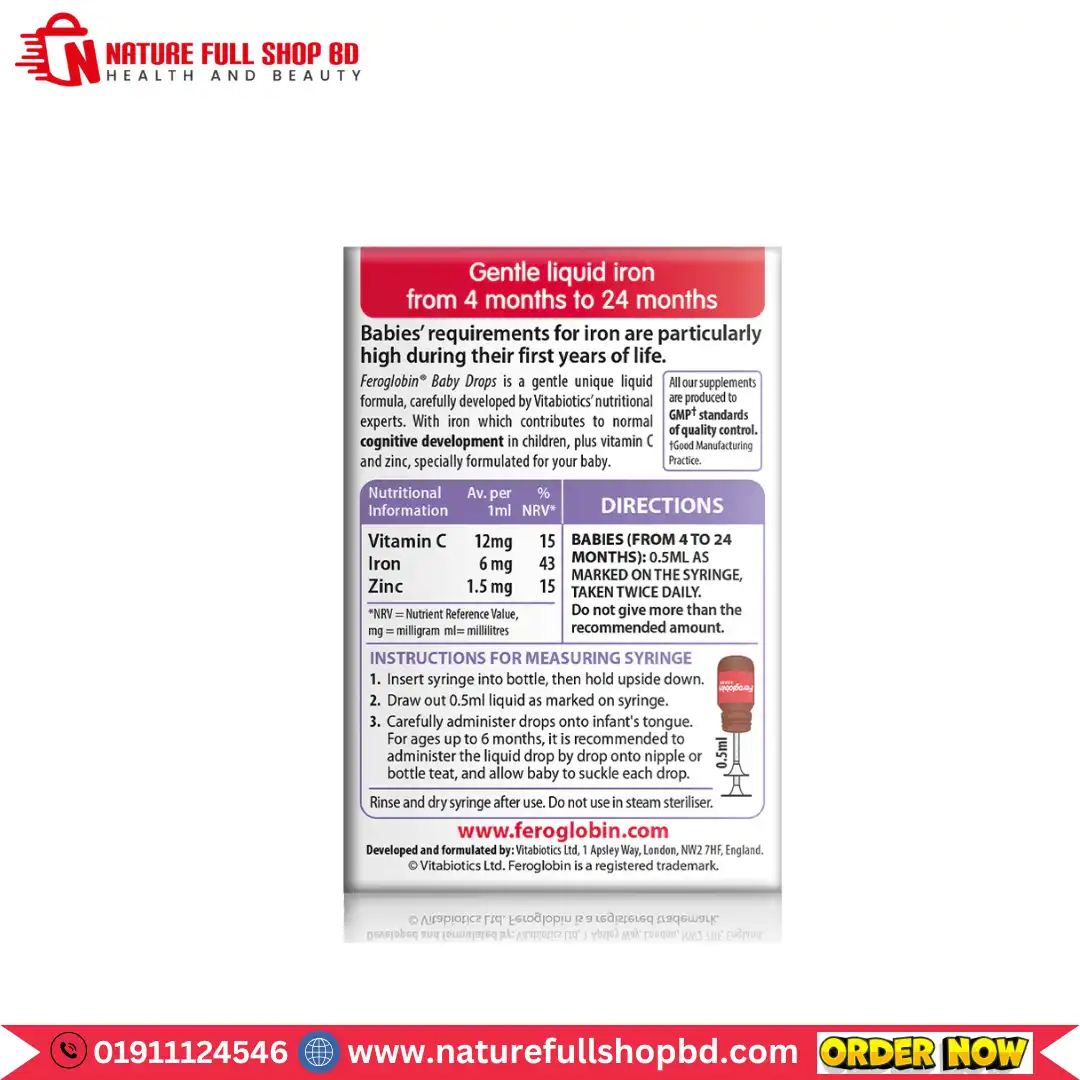 Feroglobin Baby Drops is a unique liquid iron formula with vitamin C and zinc, specially formulated for your baby in one balanced, gentle formula.