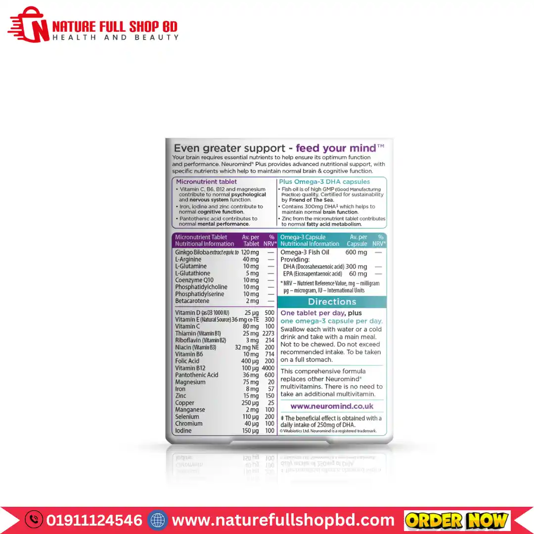 Feed your mind with Neuromind Plus – the advanced nutritional support of Neuromind with high-purity Omega-3 DHA in a convenient dual pack.